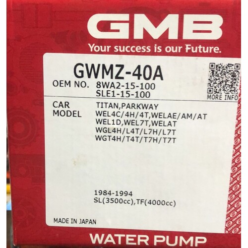 Note- In some cases, your order may arrive in different packaging, as our supplier provides GMB water pumps in a variety of boxes. However, all water pumps are genuine GMB products, and each unit is embossed with the GMB branding to confirm authenticity.